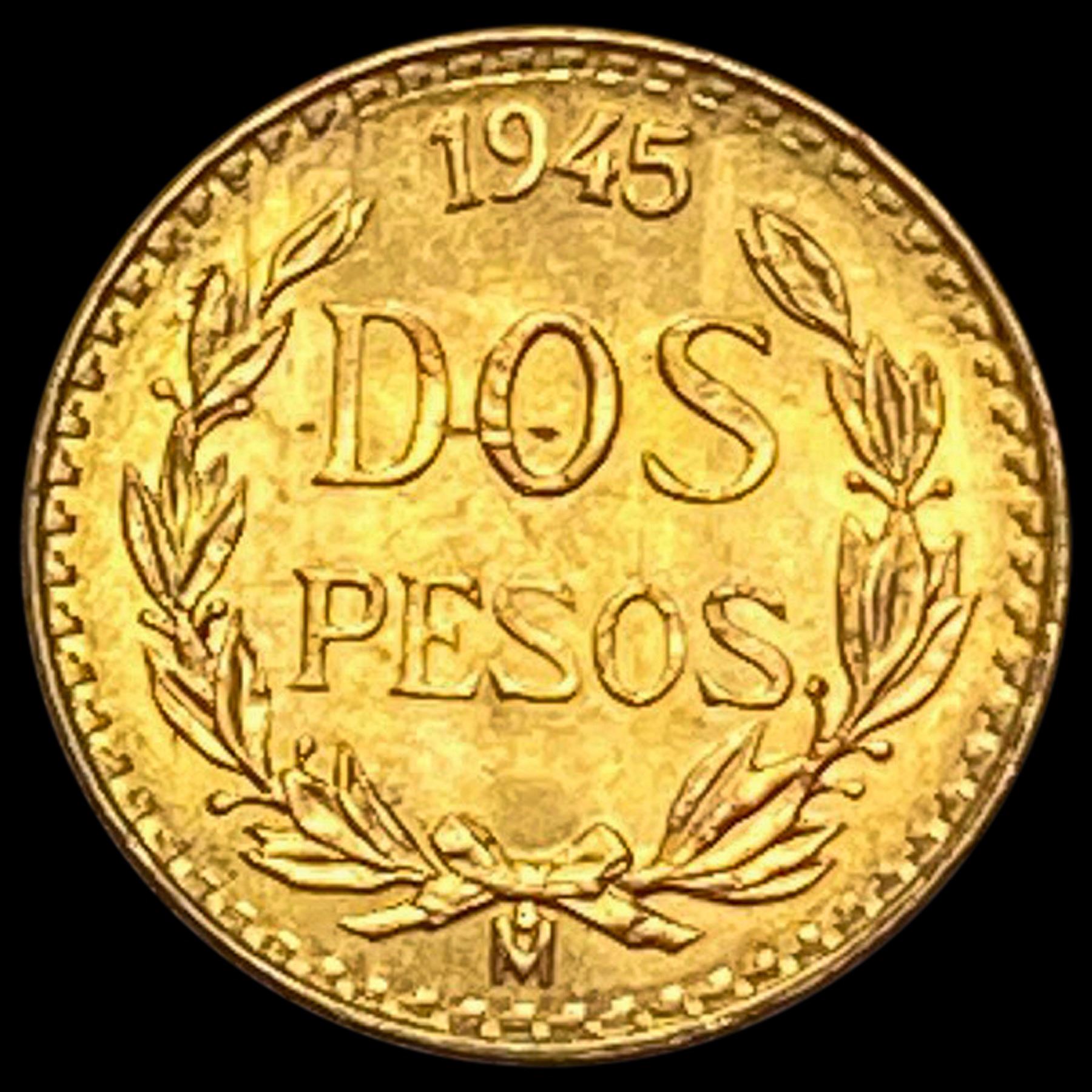 1945 Mexico 2 Pesos Gold Coin GEM BU