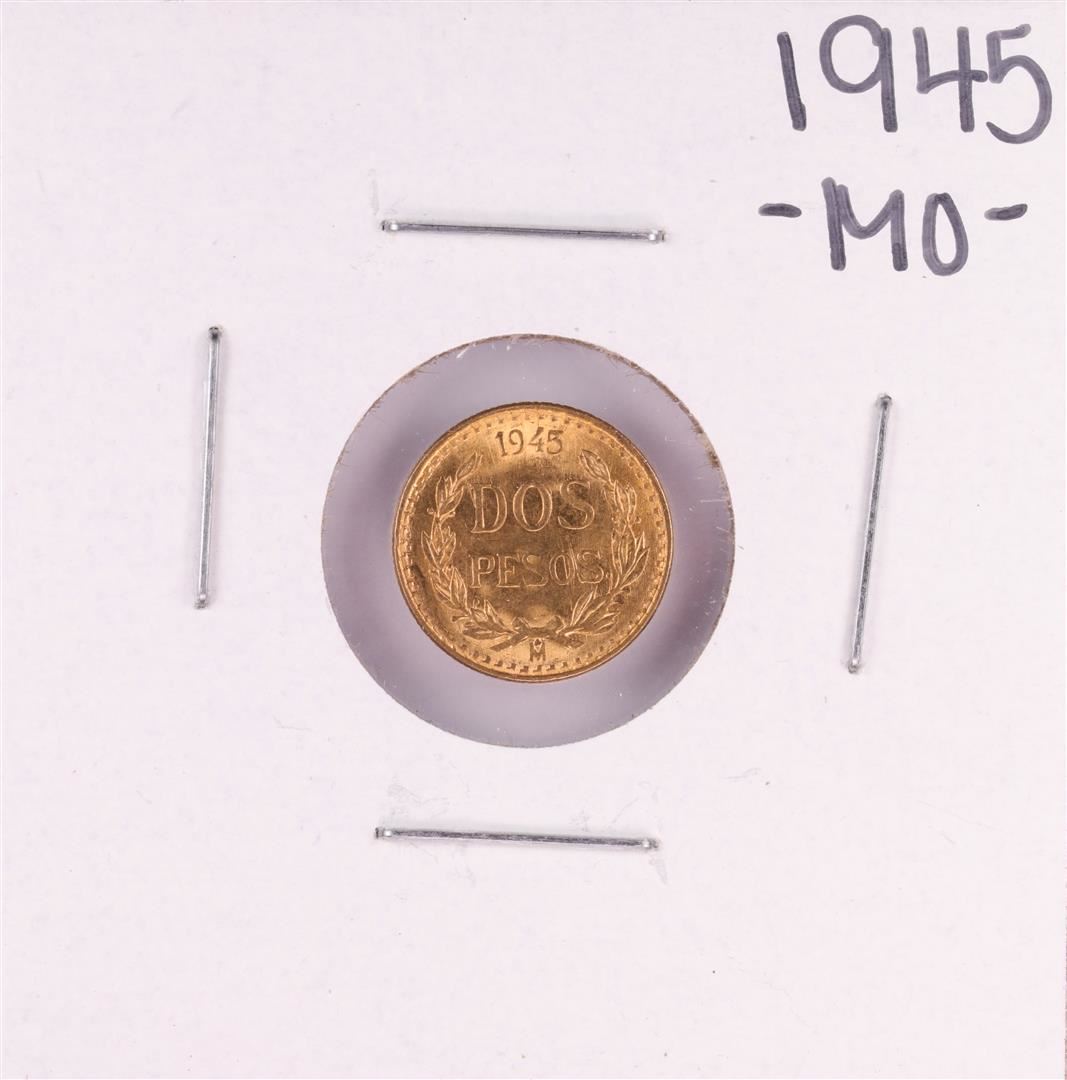 One 1945 Mexico Dos Pesos Gold Coin.
