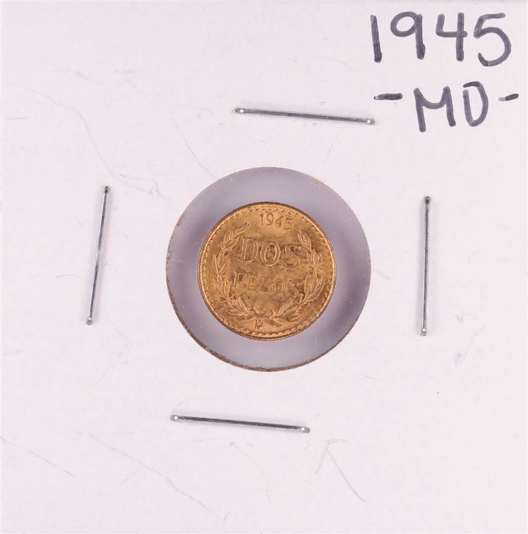 One 1945 Mexico Dos Pesos Gold Coin.