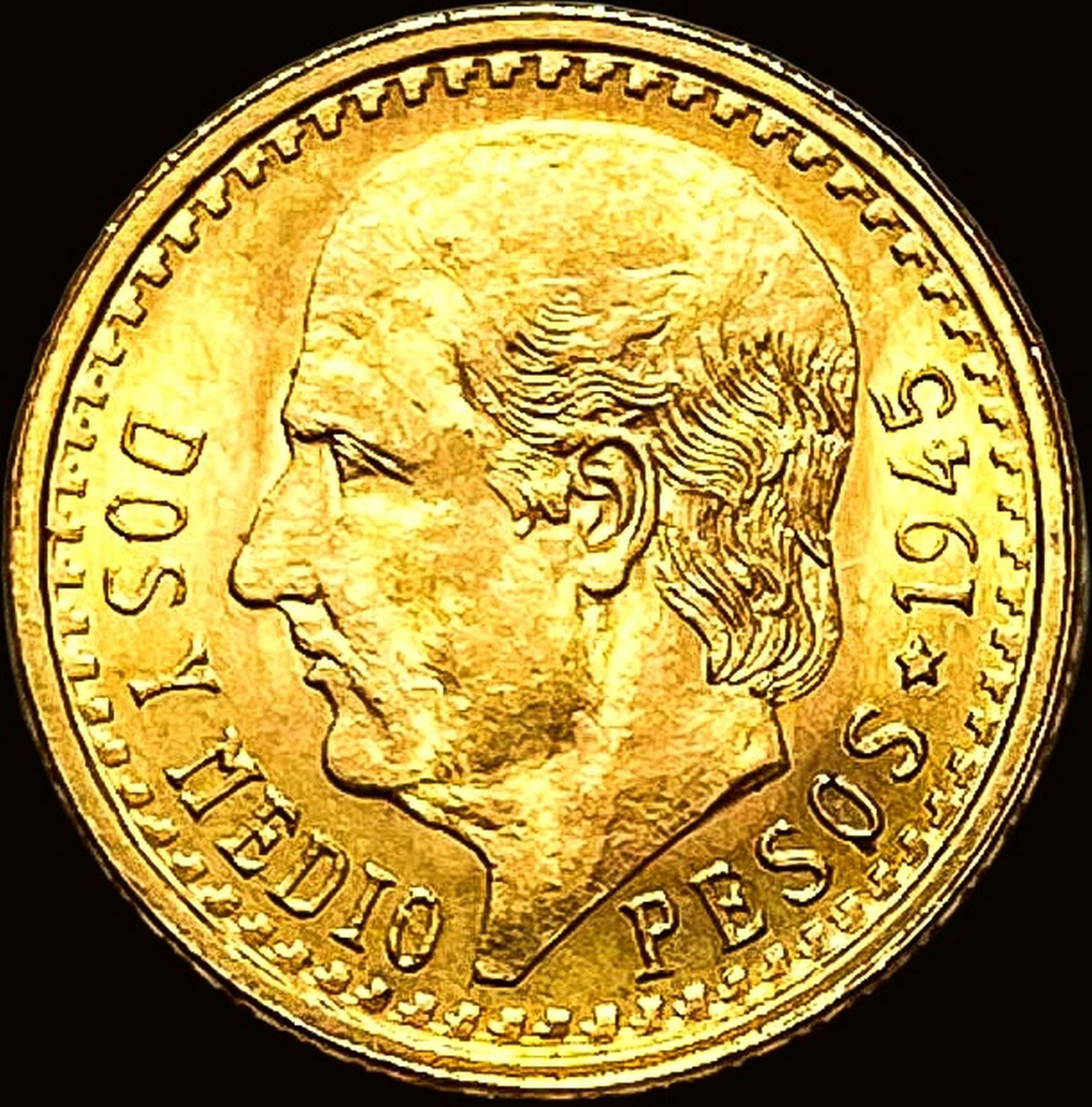1945 Mexico Gold 2 1/2 Pesos CHOICE BU