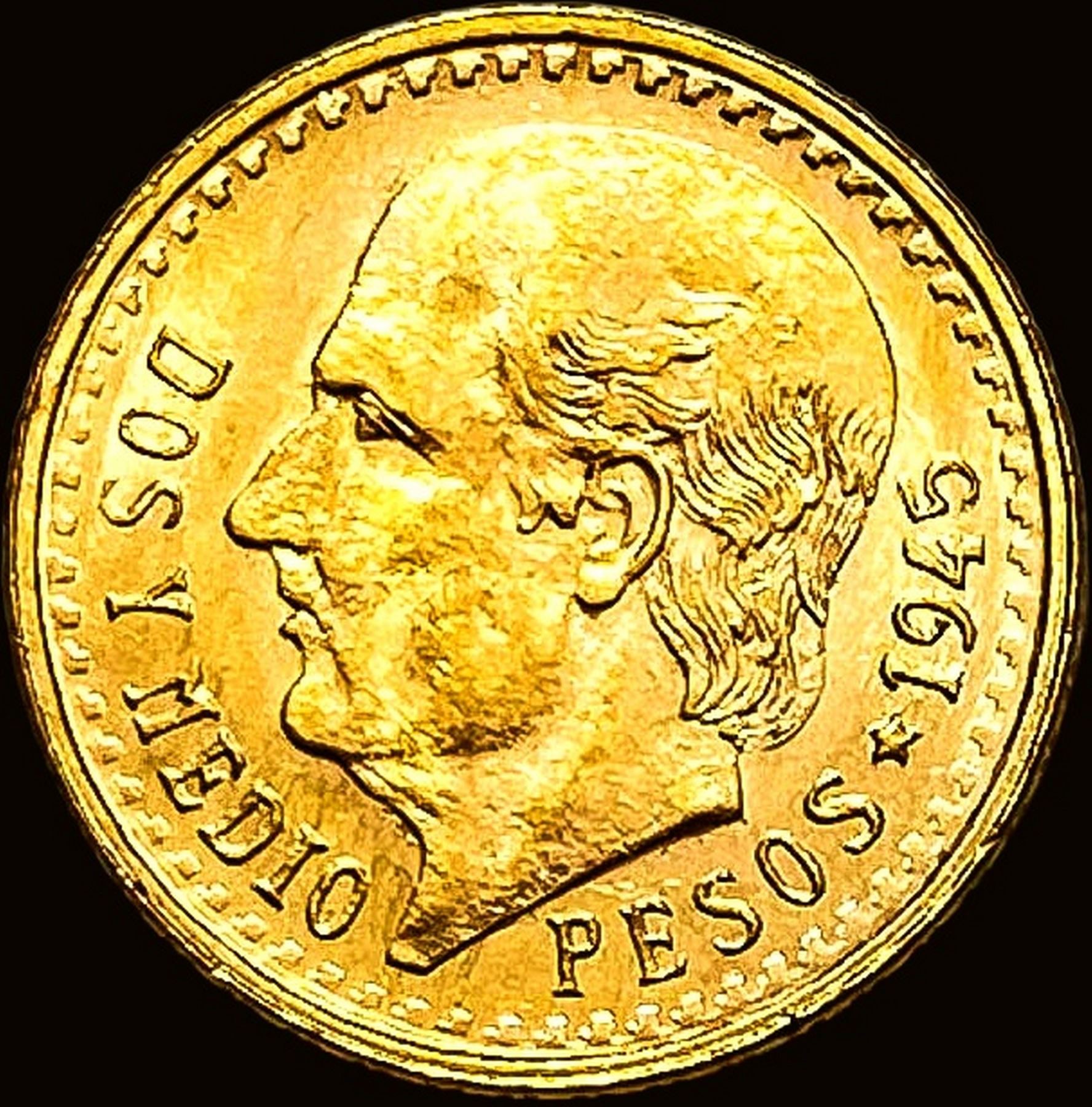 1945 Mexico Gold 2 1/2 Pesos .0603oz BU