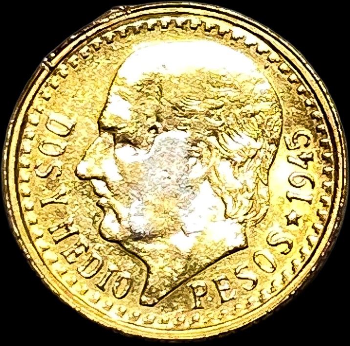 1945 Mexico Gold 2 1/2 Pesos LIGHTLY CIRCULATED