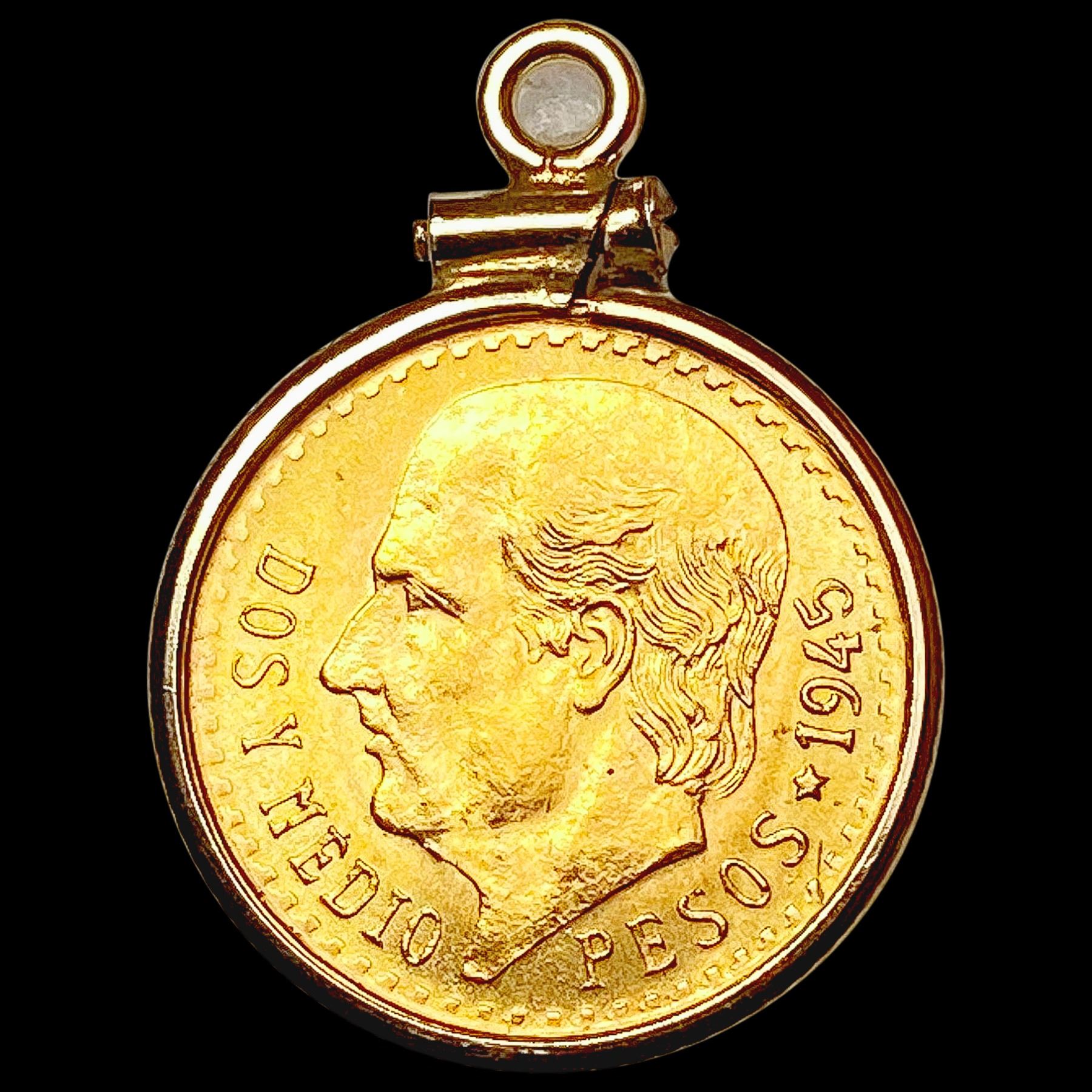 1945 Mexico Gold 2.5 Pesos in Gold Bezel 0.0503oz HIGH GRADE