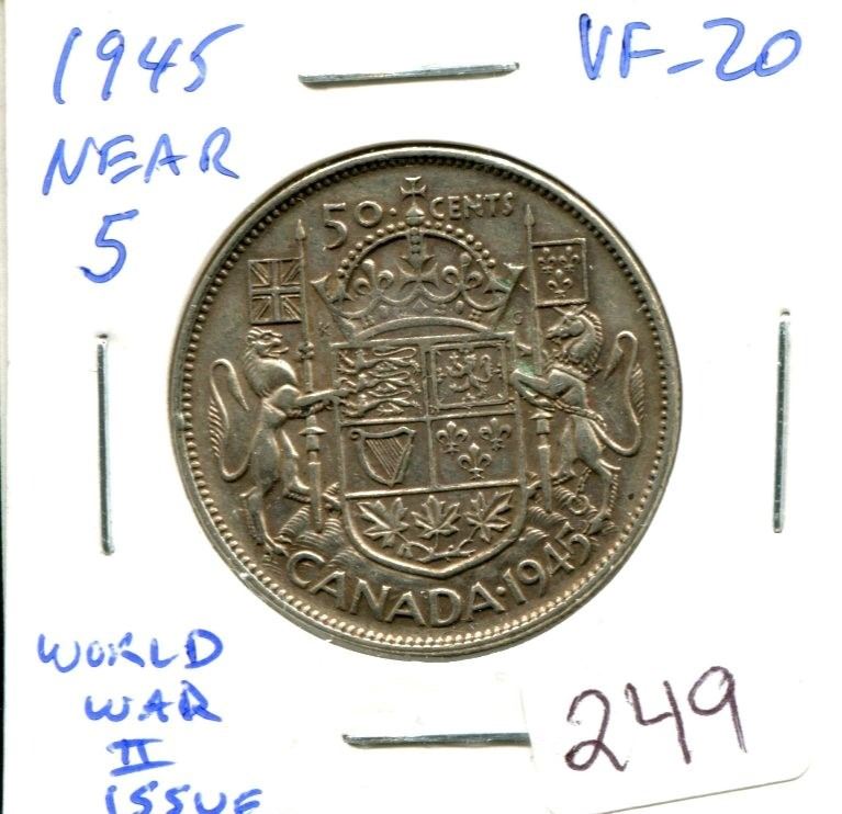 1945 Near 5 Silver 50 Cents. World War II issue. VF-20.