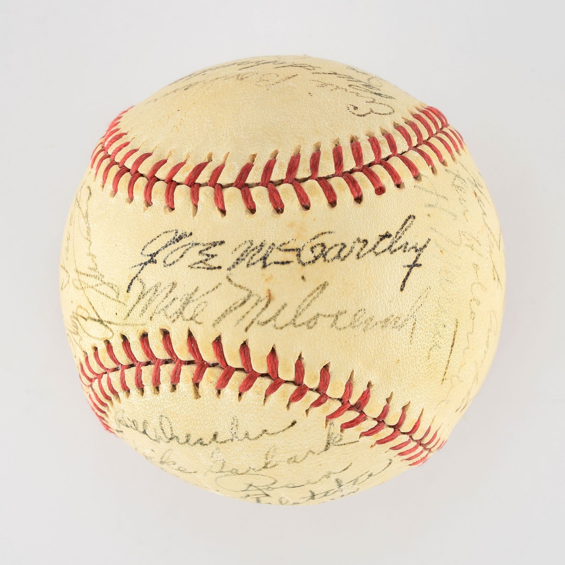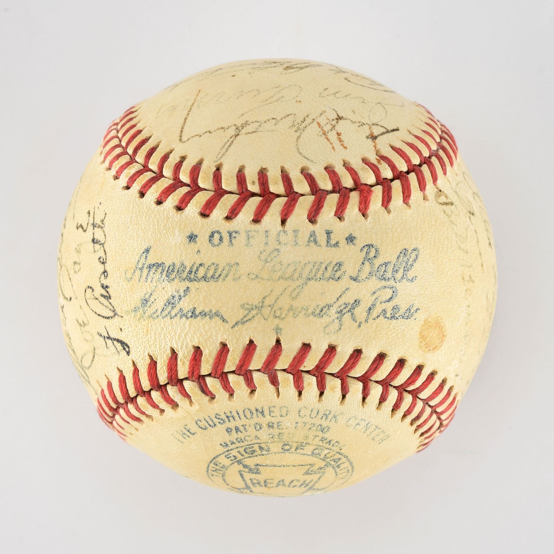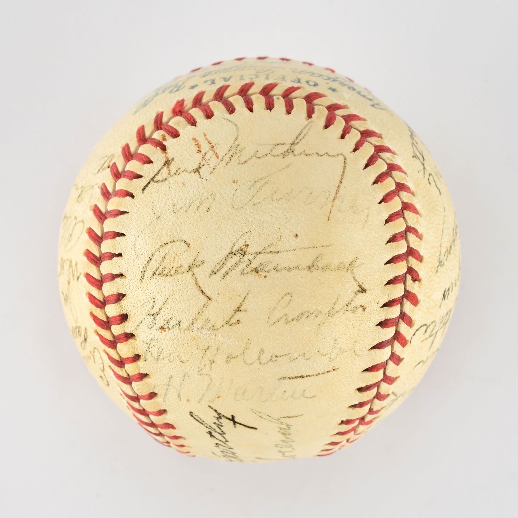 These mid 1940's team-signed baseballs are very interesting since many of these players were only major leaguers due to the many players drafted into World War II, and examples of their signatures are tough to locate. These team-signed balls from this era are very scarce.