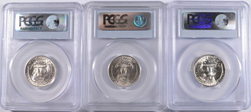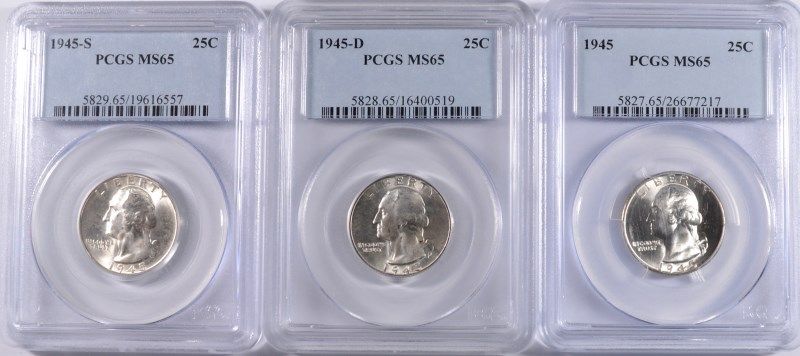 1945 P,D & S WASHINGTON QUARTERS, ALL PCGS MS-65