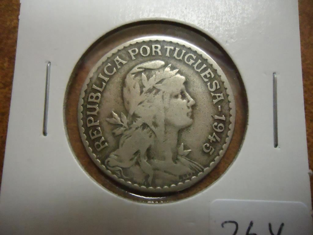 1945 PORTUGAL SILVER 1 ESCUDO