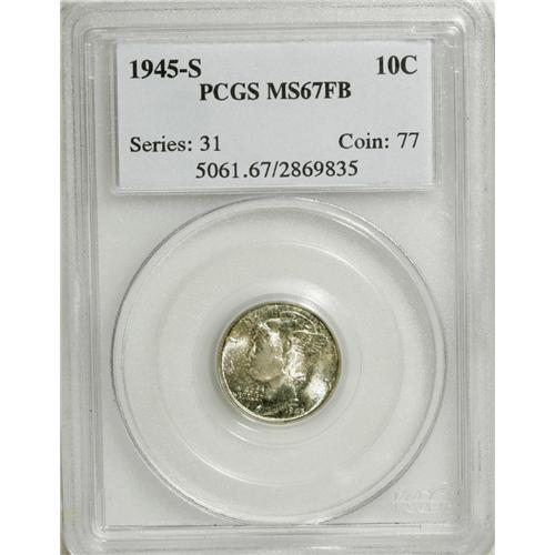 1945-S 10C MS67 Full Bands PCGS. Knob S mintmark. The