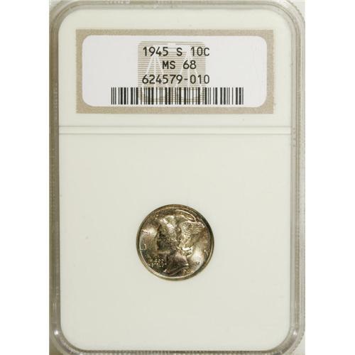 1945-S 10C MS68 NGC. Lustrous and well preserved, with