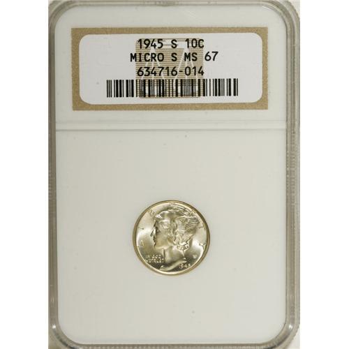 1945-S 10C Micro S MS67 NGC. NGC Census: (134/7).