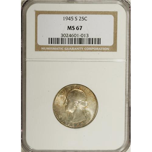 1945-S 25C MS67 NGC. NGC Census: (150/1). PCGS Pop