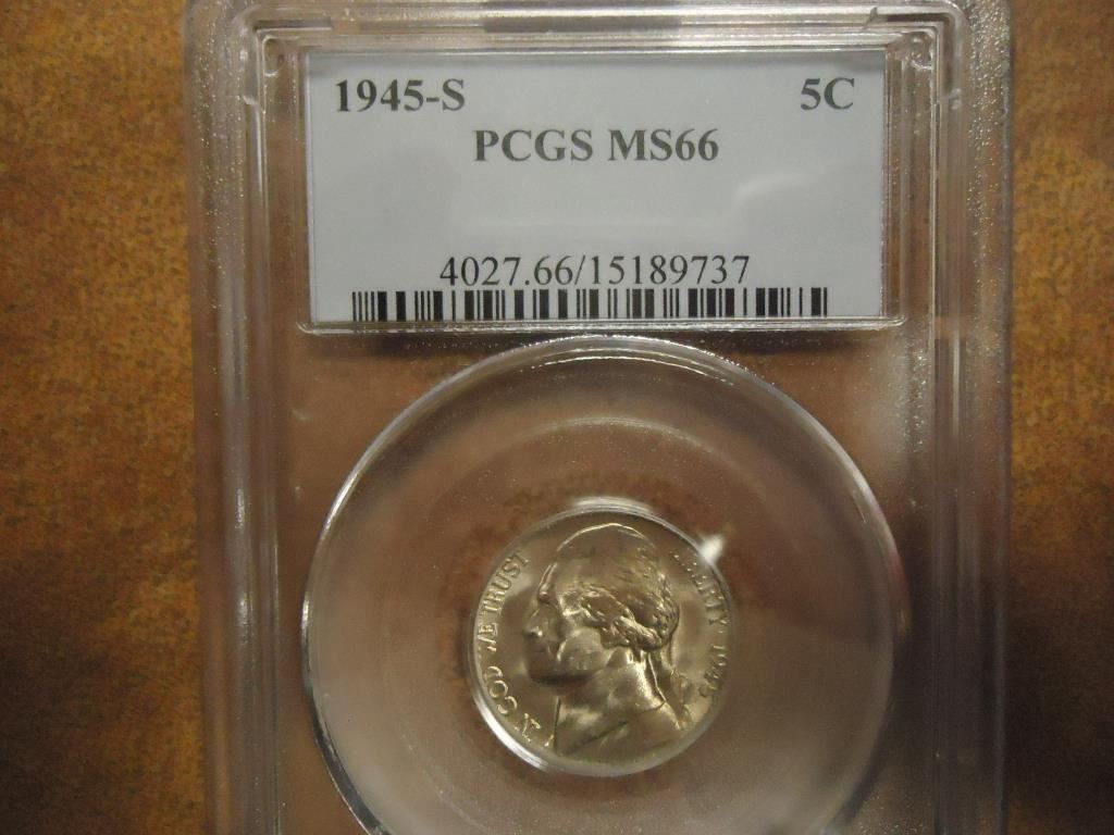 1945-S 35% SILVER JEFFERSON WAR NICKELS PCGS MS66