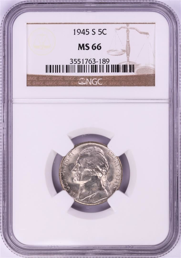 One 1945-S Jefferson Nickel Coin NGC MS66. NGC Certified.