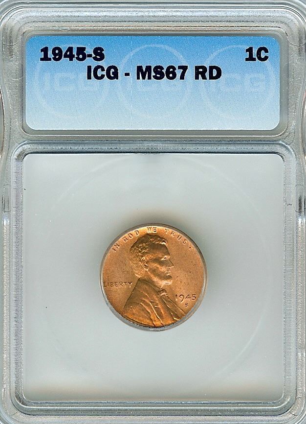 1945-S LINCOLN WHEAT CENT ICG MS67 RED