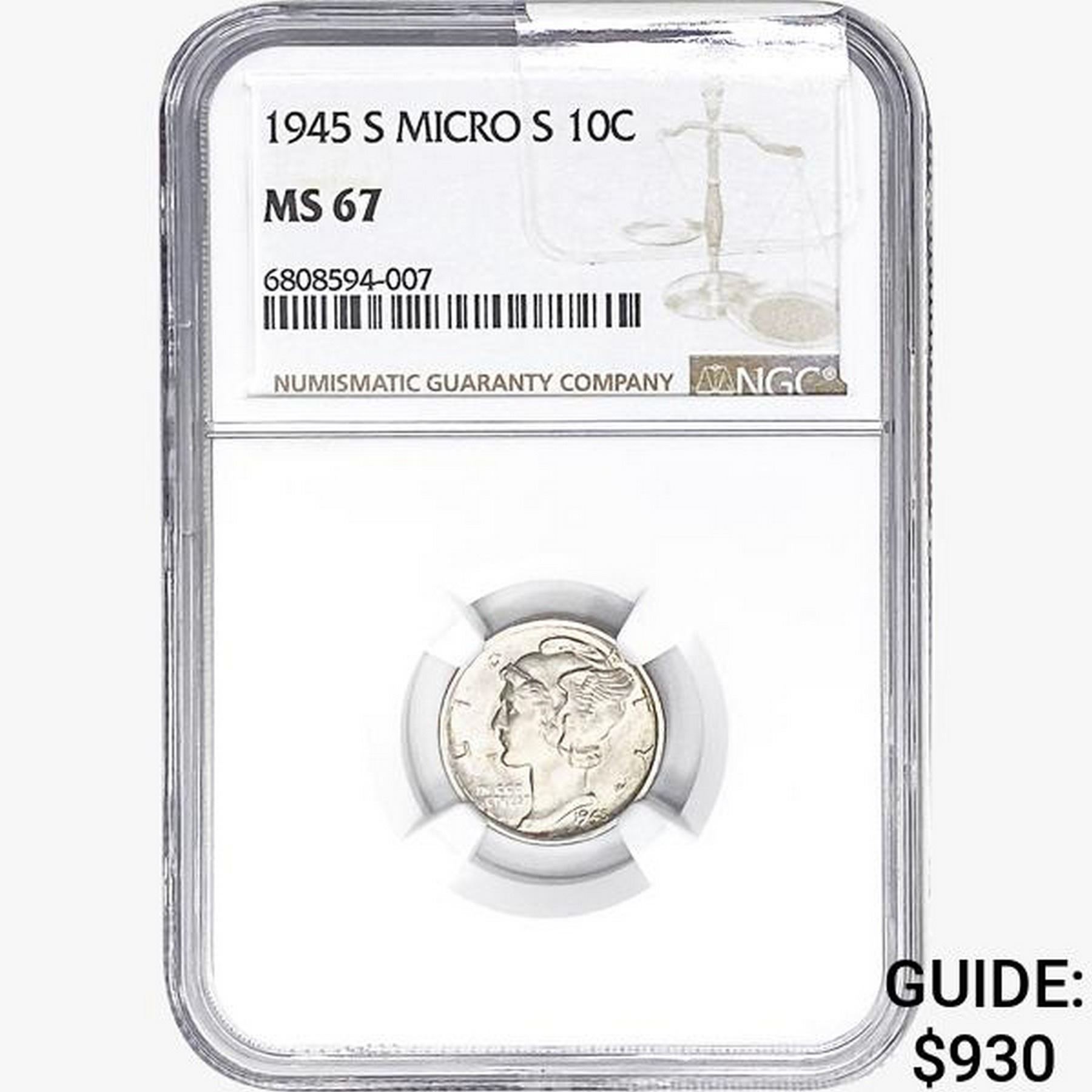 1945-S Mercury Silver Dime NGC MS67 Micro S