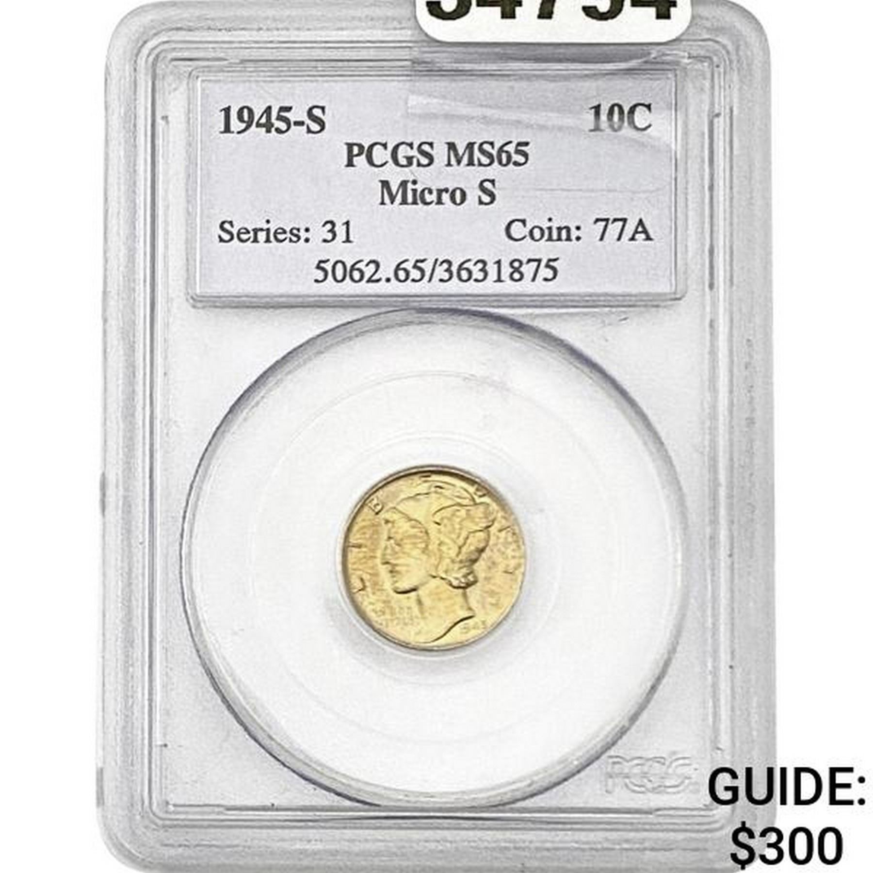 1945-S Mercury Silver Dime PCGS MS65 Micro S