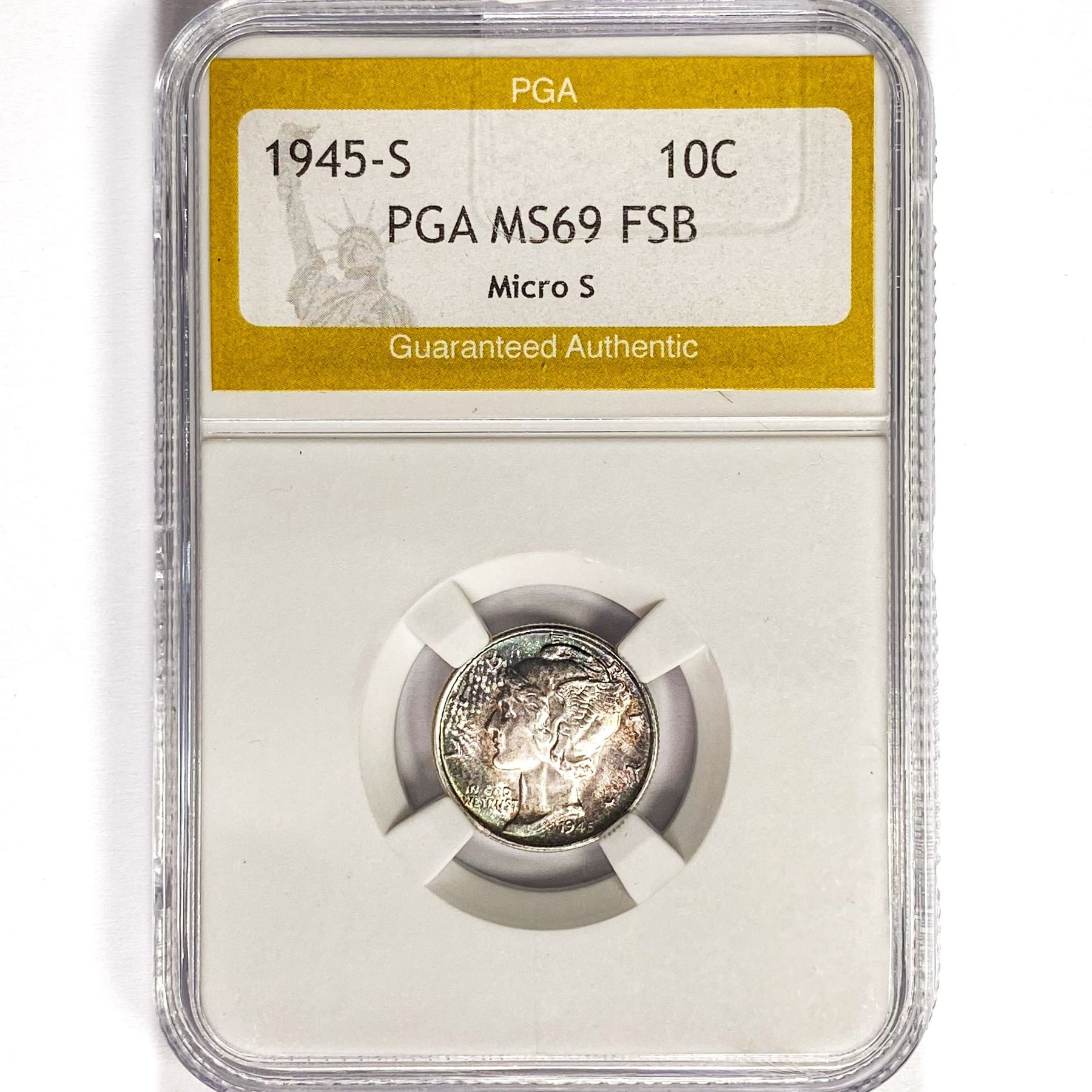1945-S Mercury Silver Dime PGA MS69 FSB,Micro S