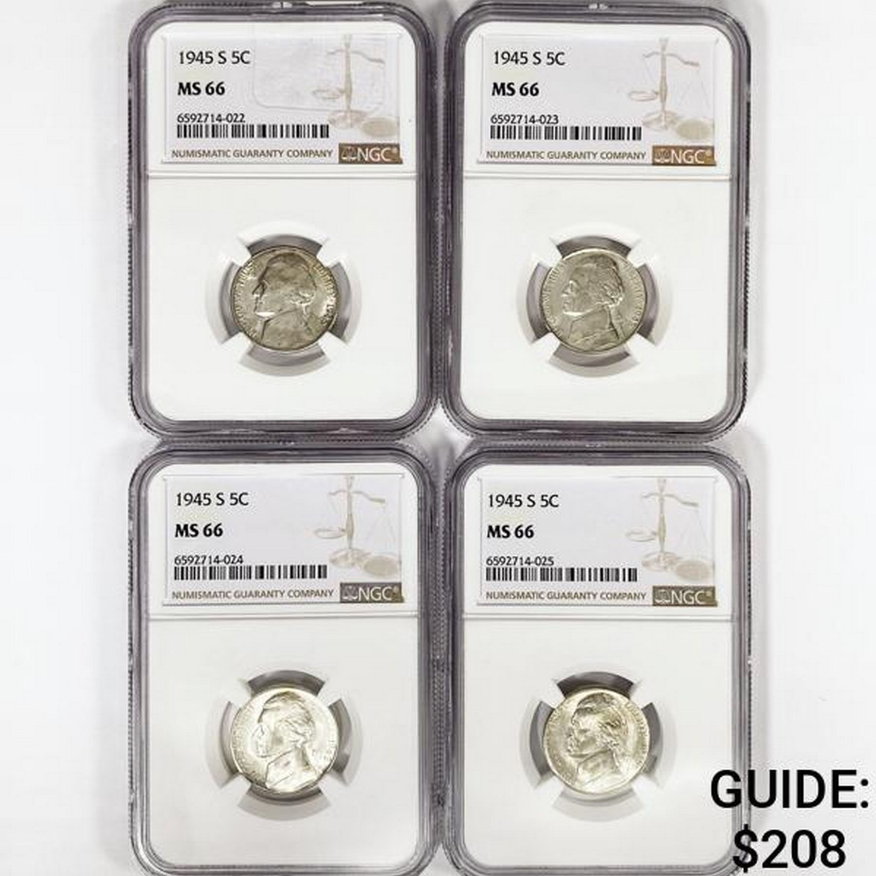 1945-S Set (4) Jefferson Nickel NGC MS66
