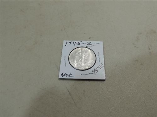 1945-S UNCIRCULATED WALKING LIBERTY HALF DOLLAR. AS SHOWN. VIEW PICTURE FOR DETAIL.