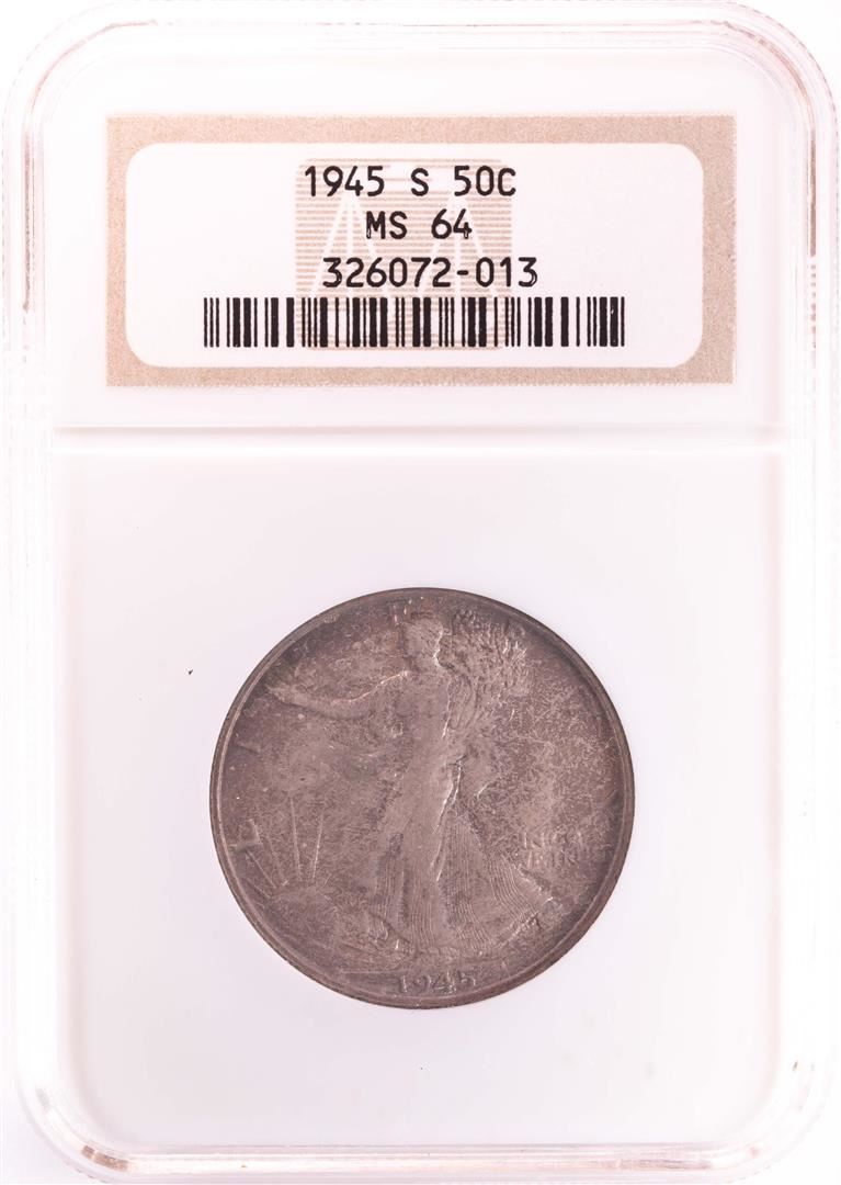 One 1945-S Walking Liberty Half Dollar Coin NGC MS64. NGC Certified.