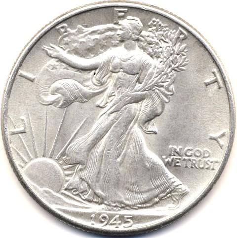 1945 SILVER LIBERTY WALKER HALF DOLLAR-UNC