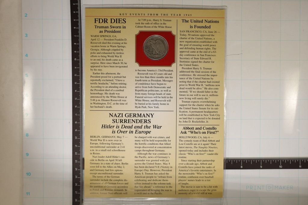 SET WITH A US TWO CENT POSTAGE STAMP ON INFO  CARD, THE WAR IS OVER JAPAN SURENDER IS  ACCEPTED, IN PLASTIC SLEEVE