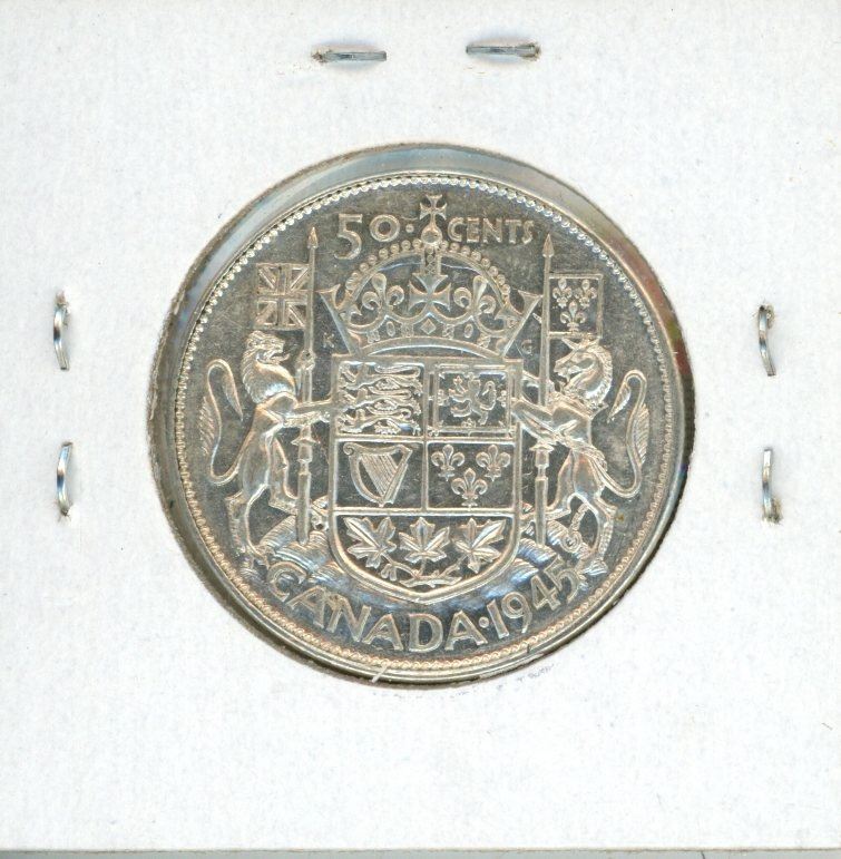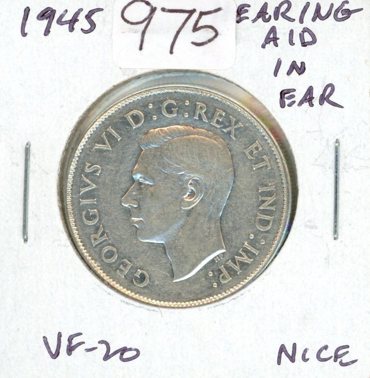 1945 Silver 50 Cents. Hearing Aid in King’s Ear from Die Clash. VF-20. Scarce.