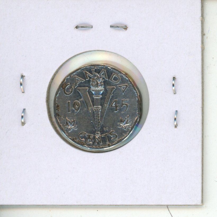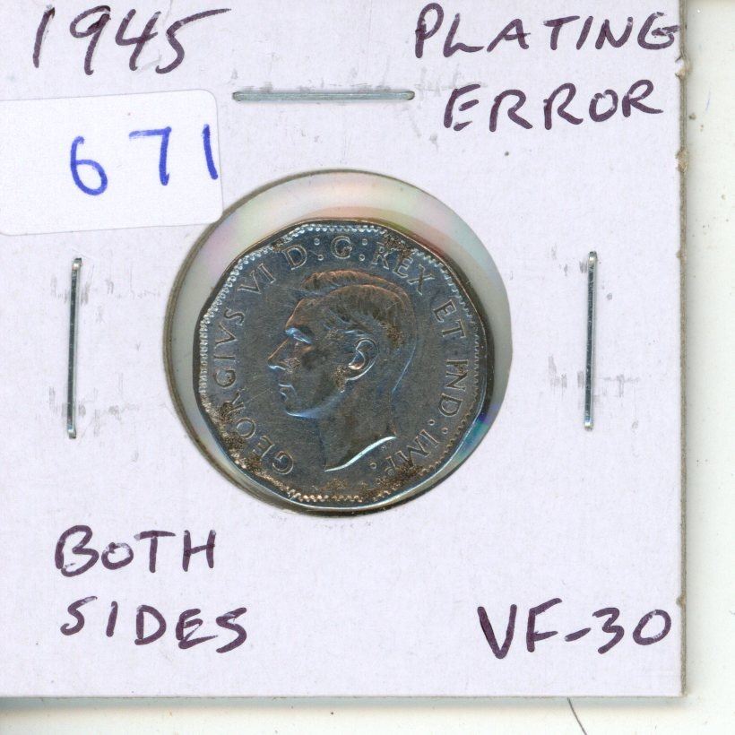 1945 Steel Canadian 5 Cents Plating Error on both sides. VF-30. Scarce.
