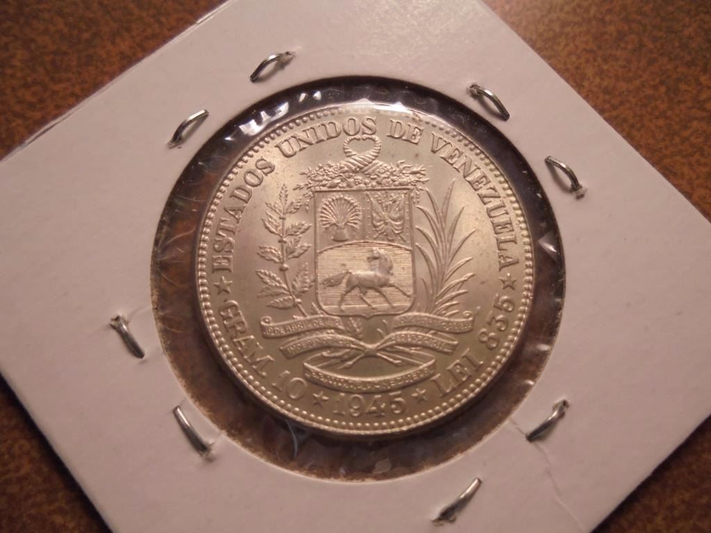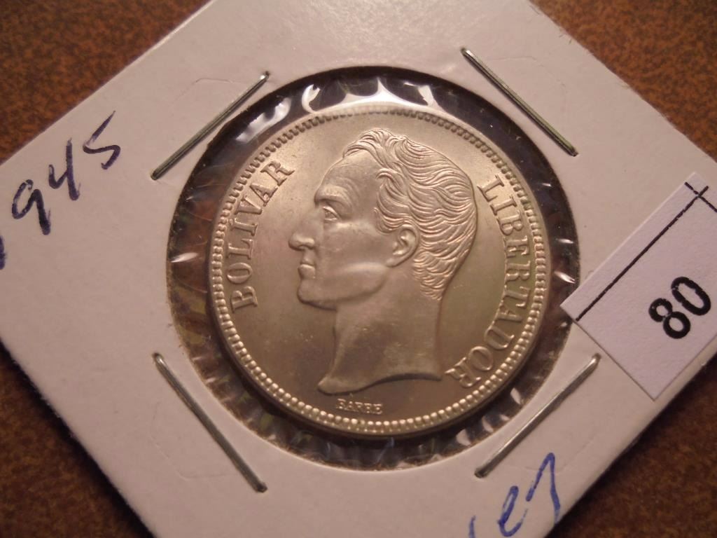1945 VENEZUELA SILVER 2 BOLIVARS UNC