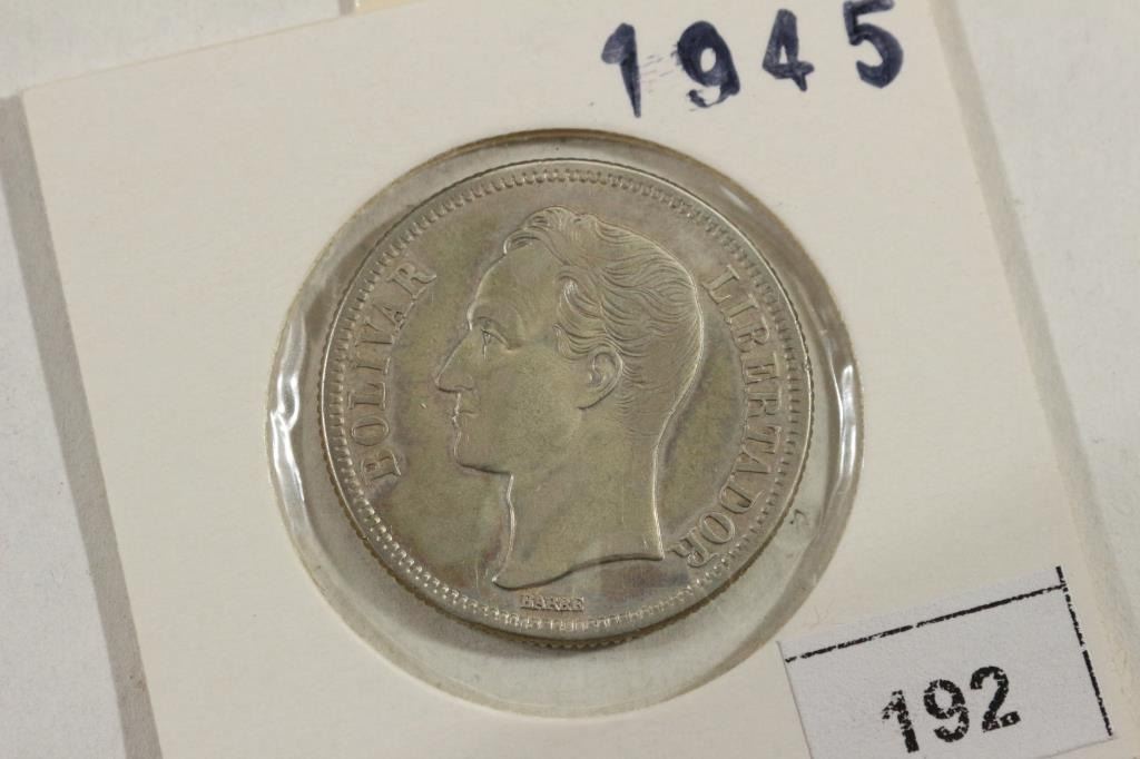 1945 VENEZUELA SILVER 2 BOLIVARS