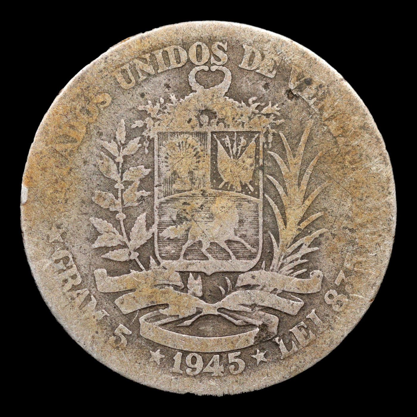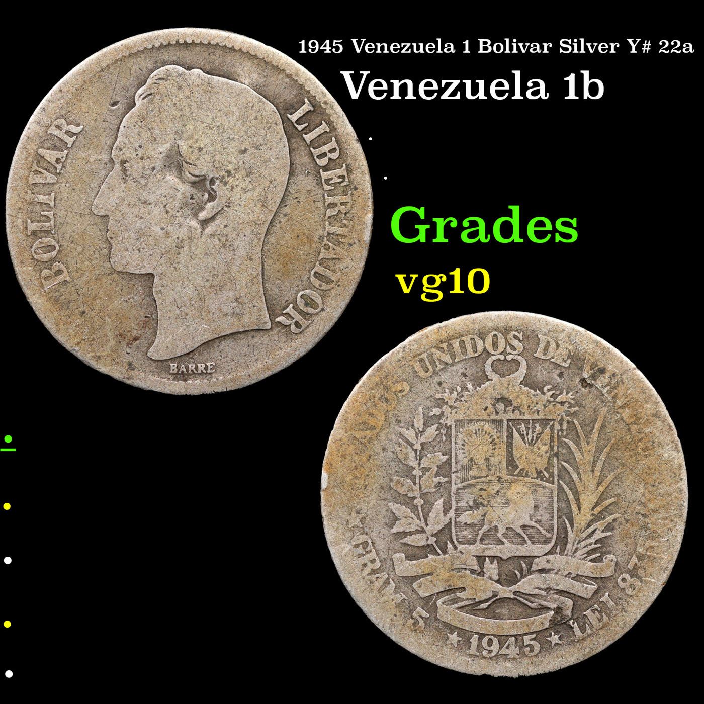 1945 Venezuela 1 Bolivar Silver Y# 22a Grades vg+.