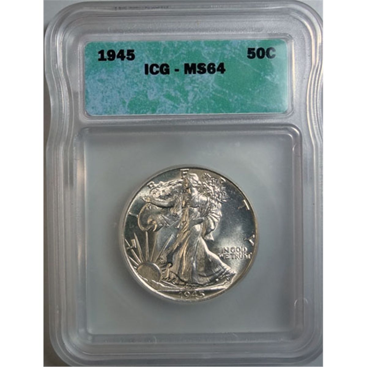1945 WALKING LIBERTY HALF DOLLAR ICG MS-64