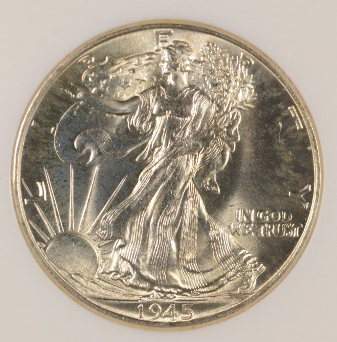 1945 WALKING LIBERTY HALF DOLLAR, NGC MS-65 GEM