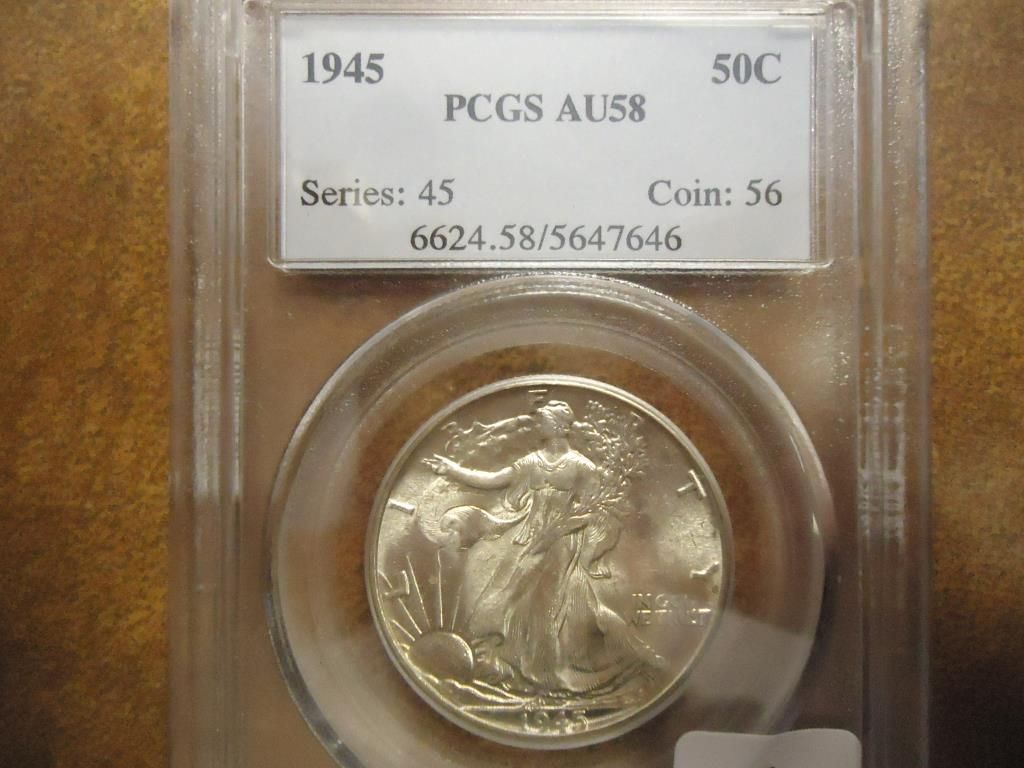 1945 WALKING LIBERTY HALF DOLLAR PCGS AU58