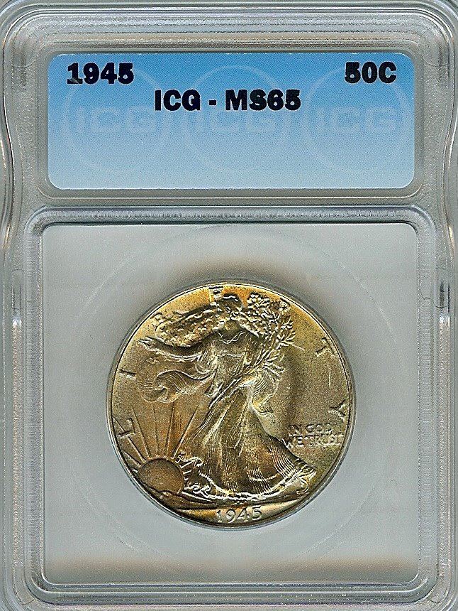 1945 WALKING LIBERTY SILVER 50 CENTS ICG MS-65