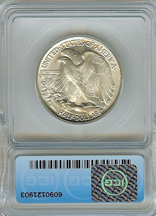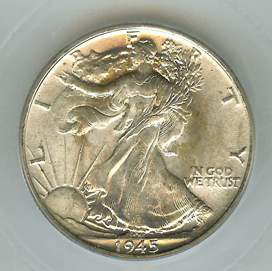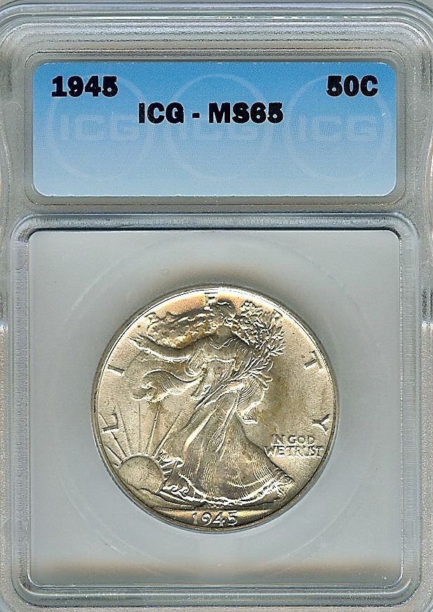 1945 WALKING LIBERTY SILVER 50 CENTS ICG MS65 NICELY TONED!