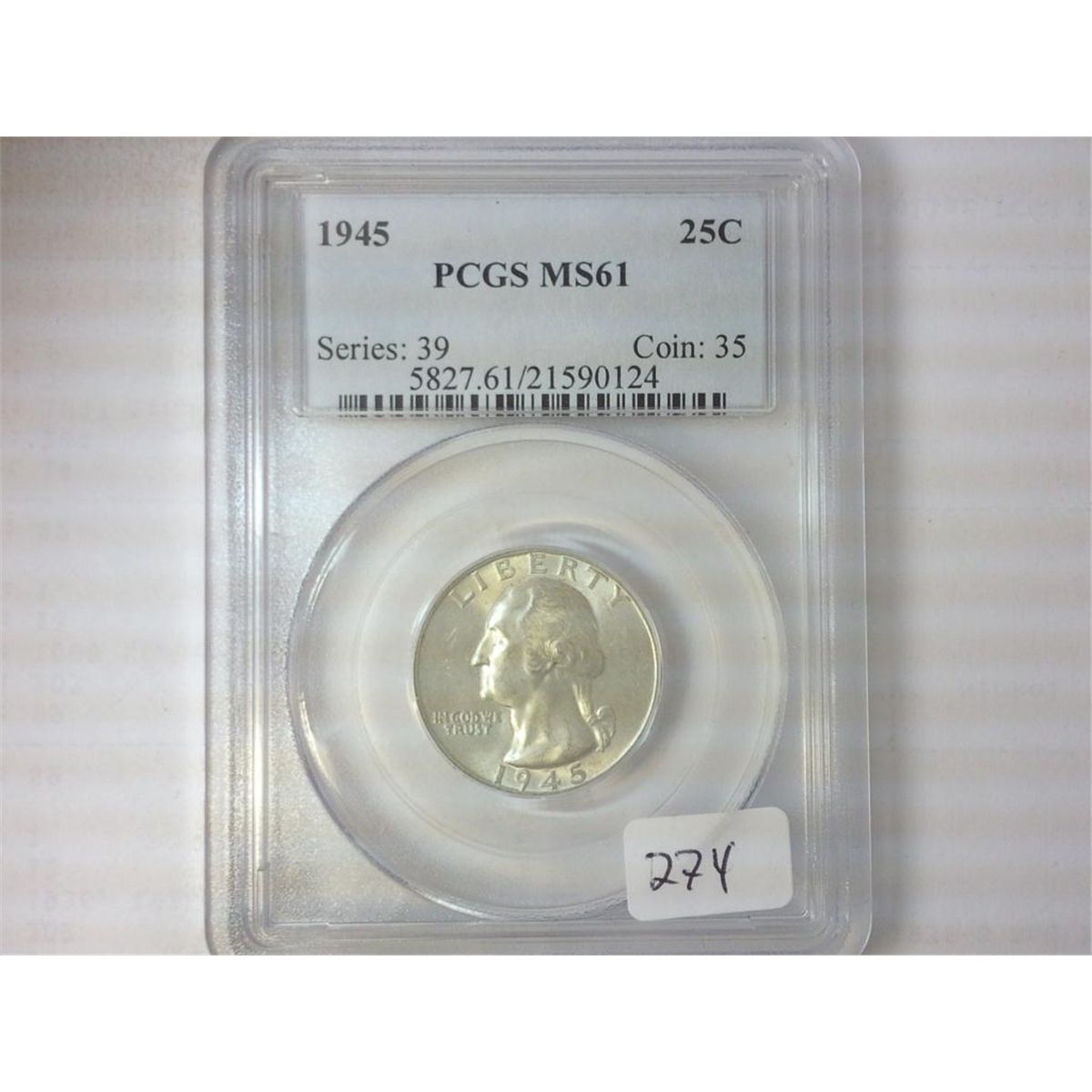 1945 WASHINGTON SILVER QUARTER PCGS MS61