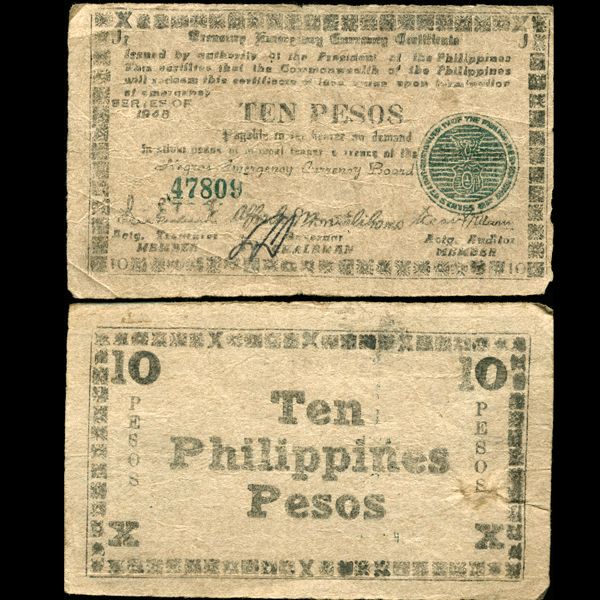 1945 WW2 Guerrilla Rebel Philippines 10P Note Negros (CUR-007286)