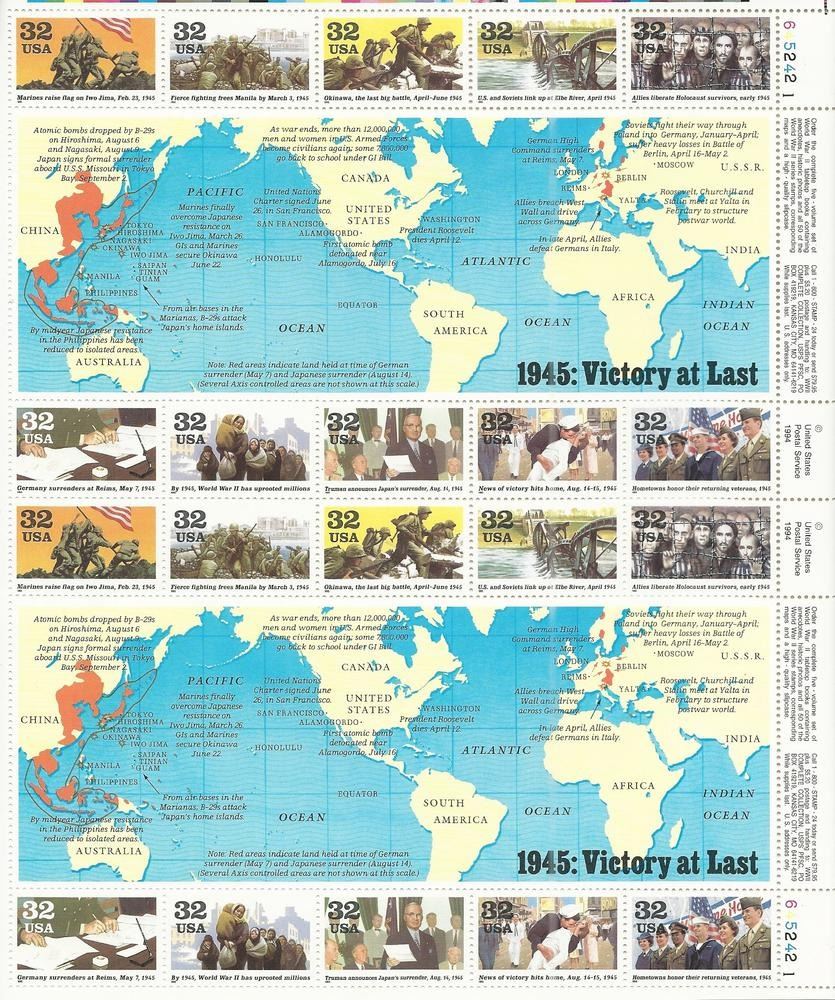 1945 WWII Victory At Last Sheet Collectible Stamp 32 Cent Sheet Scott 2981