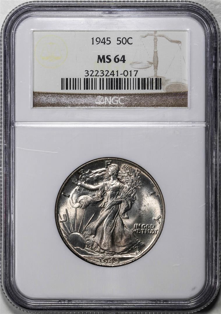 One 1945 Walking Liberty Half Dollar Coin NGC MS64. NGC Certified.
