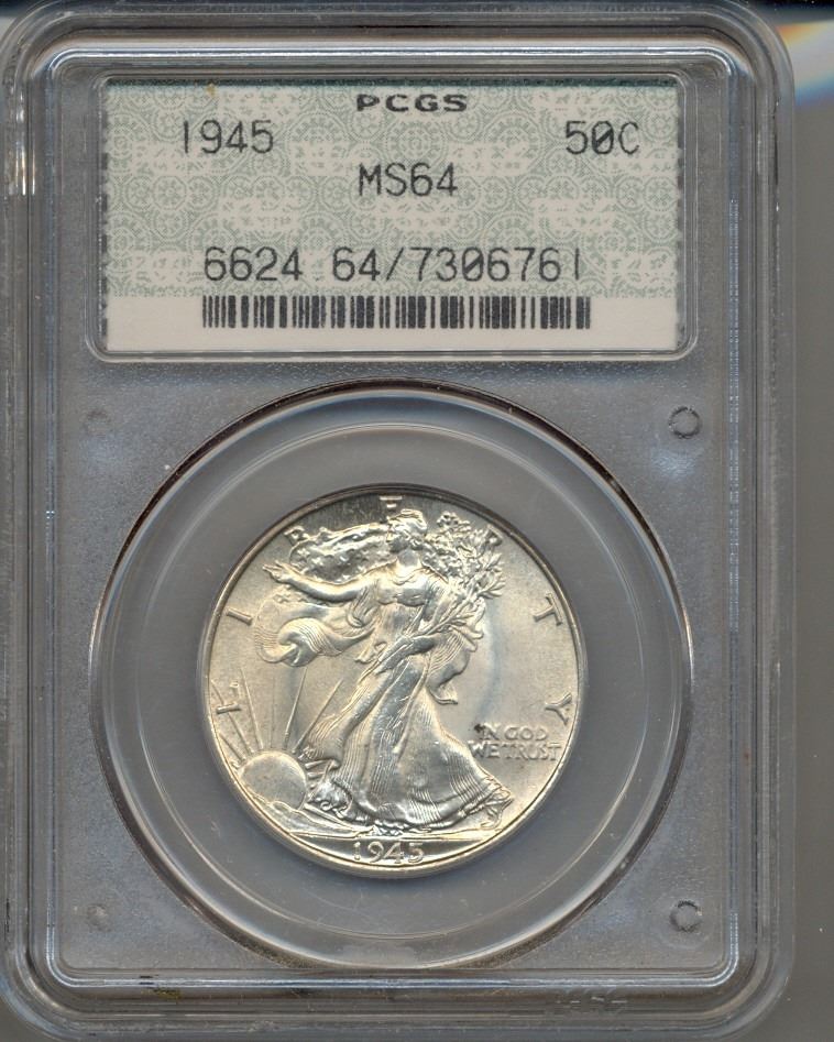 One 1945 Walking Liberty Half Dollar Coin PCGS MS64.