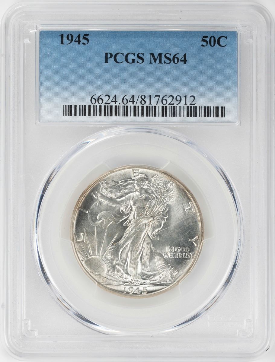 One 1945 Walking Liberty Half Dollar Coin PCGS MS64.