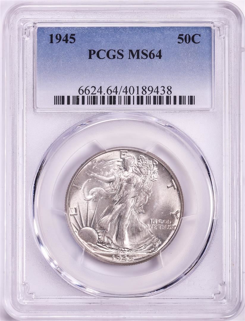 One 1945 Walking Liberty Half Dollar Coin PCGS MS64. PCGS Graded.