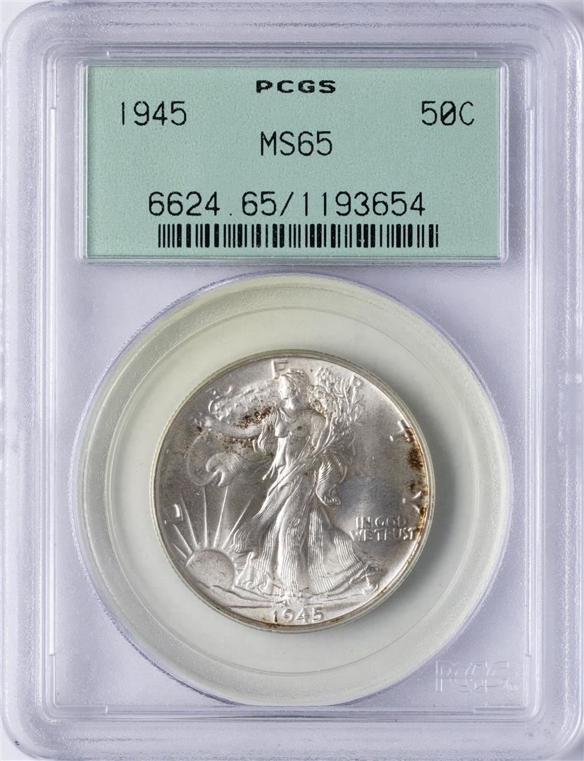 One 1945 Walking Liberty Half Dollar Coin PCGS MS65. PCGS Graded.