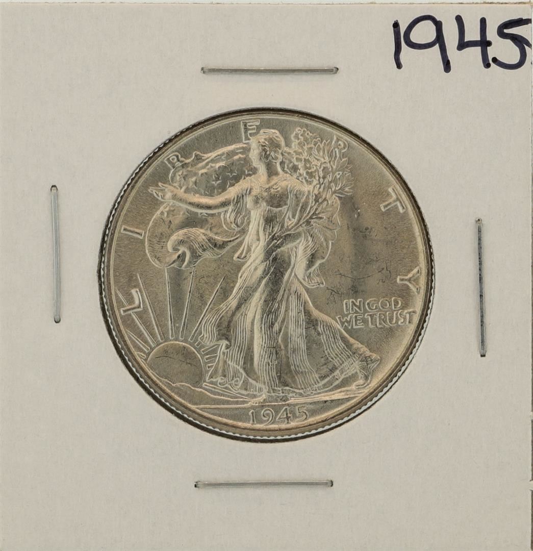 One 1945 Walking Liberty Half Dollar Coin.
