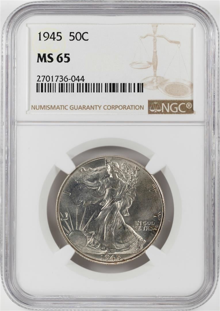 One 1945 Walking Liberty Half Dollar Coins NGC MS65. NGC Certified.