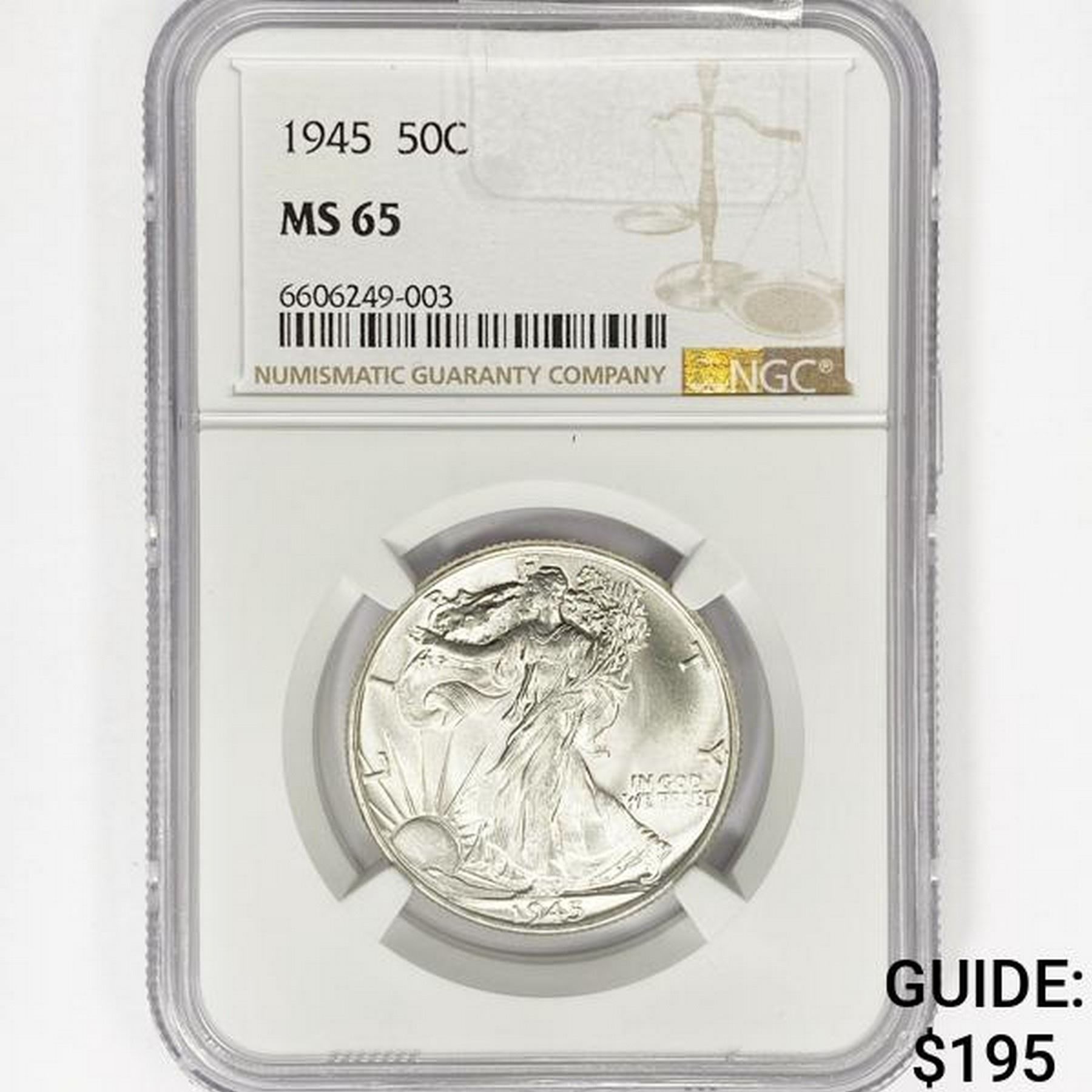 1945 Walking Liberty Half Dollar NGC MS65