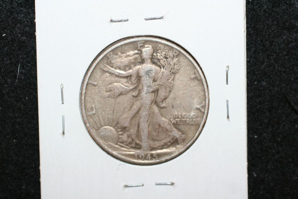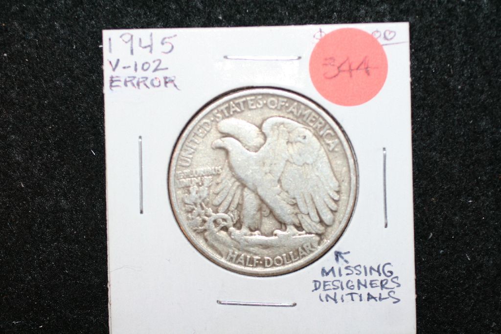 1945 Walking Liberty Half Dollar; V102 Error-Missing Designers Initials