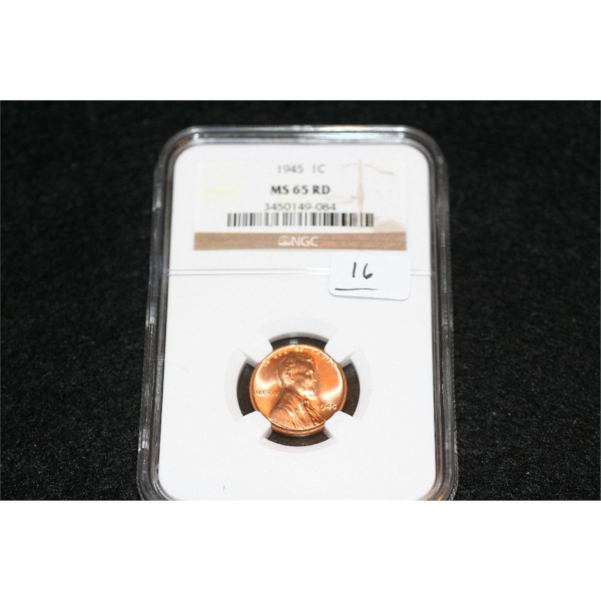 1945 Wheat Back penny, NGC graded, MS65 RD