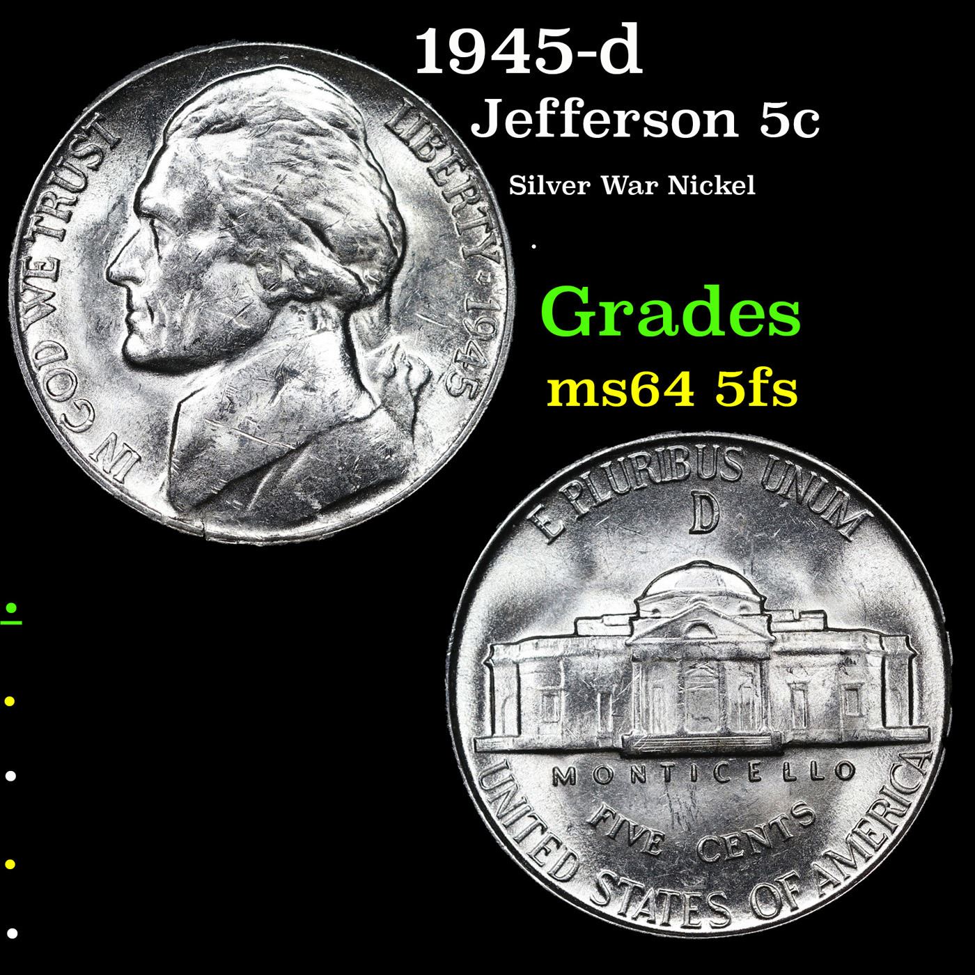 1945-d Jefferson Nickel 5c Grades Choice Unc 5fs.